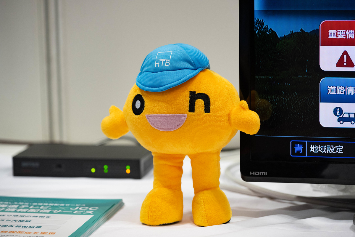 New Relic 様のお隣には一般社団法人IPTVフォーラム様がブースを出展しており、地域情報や防災情報を発信するプラットフォームの説明などをされていました。ブースにはマスコットのonちゃんがいて和やかな雰囲気でした。